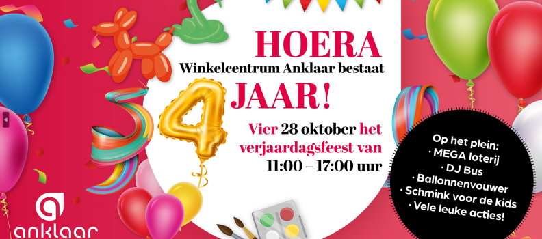 0 By Ivo Kelava In NieuwsPosted oktober 4, 2023MEGA Loterij!Op zaterdag 28 oktober viert Winkelcentrum Anklaar haar 4 jarig bestaan! Om dit te vieren wordt er dit jaar een MEGA loterij georganiseerd, waarbij je súper veel leuke prijzen kunt winnen. Als je [...] READ MORE